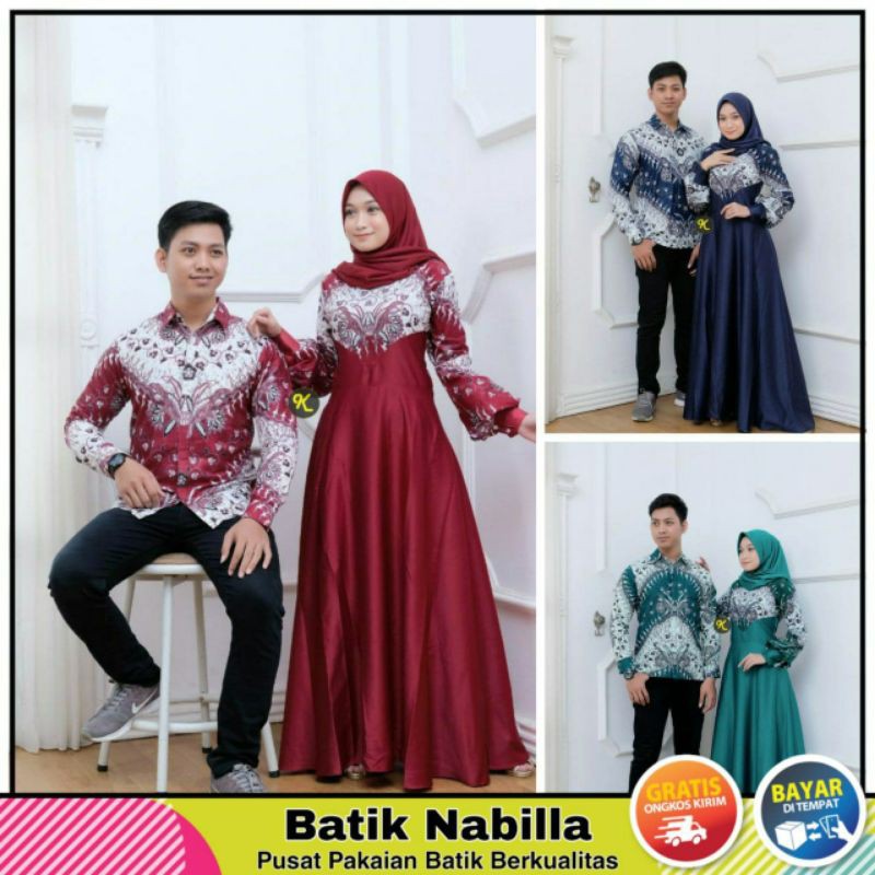 Name: Gamis Batik Kebaya Wanita Couple Pasangan Suami Istri Keluarga Muslim Syari Kekinian Terbaru Nbl10
