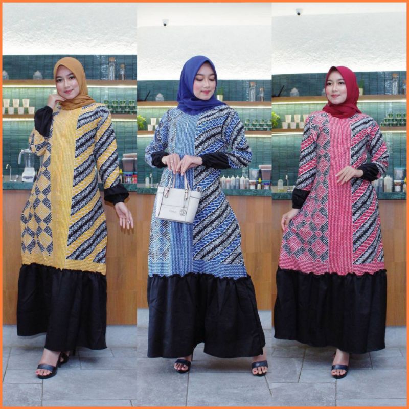 Name: Gamis Batik Modern, Maxi Isyana Indigo Murah Katun Halus Mix Moscrepe Ori Masayu Motif Parang Cape