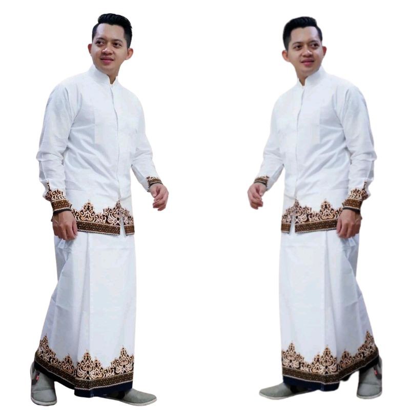 Name: Batik Solo Modern Motif Tumpal Putih Setelan Sarung Dan Koko(full Furing)
